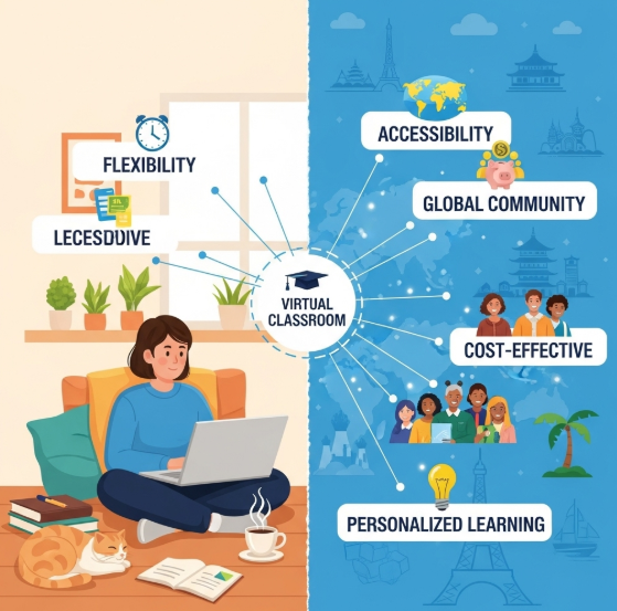- Cost-Effective: Lower tuition and no relocation/commuting expenses.